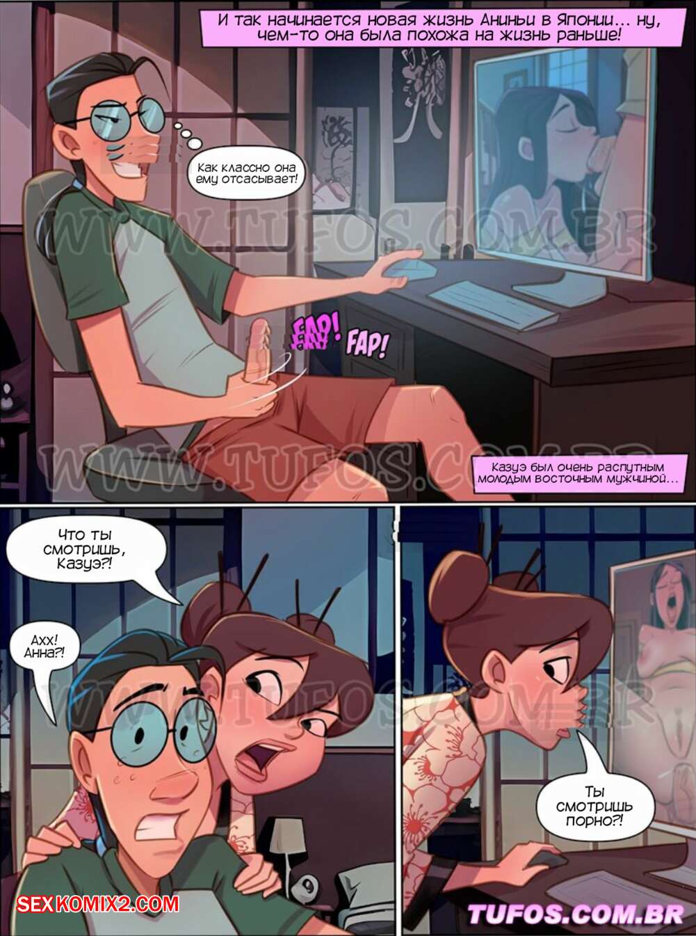 ΠΠΎΡΠ½ΠΎ ΠΊΠΎΠΌΠΈΠΊΡ Π§Π΅ΡΠ²Π΅ΡΠΎ ΠΏΠΎΡ ΠΎΡΠ»ΠΈΠ²ΡΡ . Π§Π°ΡΡΡ 7. As 4 sacanas. Tufos ΠΠ½ΠΈΠ½ΡΡ ΠΏΡΠΈΠ΅Ρ Π°Π»Π° Π² ΡΠ²ΠΎΠΉ Π½ΠΎΠ²ΡΠΉ Π΄ΠΎΠΌ Π² Π―ΠΏΠΎΠ½ΠΈΠΈ. ΠΡΠ°ΡΠΎΡΠΊΠ° ΠΏΠ΅ΡΠ΅ΠΎΠ΄Π΅Π»Π°ΡΡ Π² ΠΊΠΈΠΌΠΎΠ½ΠΎ ΠΈ Π·Π°ΡΡΠ°Π»Π° ΠΌΠΎΠ»ΠΎΠ΄ΠΎΠ³ΠΎ ΠΏΠ°ΡΠ½Ρ Π·Π° ΠΏΡΠΎΡΠΌΠΎΡΡΠΎΠΌ ΠΏΠΎΡΠ½ΠΎ, ΡΡΠΎ Π΅Π΅ ΠΎΡΠ΅Π½Ρ Π²ΠΎΠ·Π±ΡΠ΄ΠΈΠ»ΠΎ. ΠΠ΅Π²ΡΡΠΊΠ° ΡΠ°Π·Π΄Π΅Π»Π°ΡΡ ΠΈ ΠΎΡΡΠΎΡΠ°Π»Π° Ρ ΡΠΉ ΠΏΠ°ΡΠ½Ρ, ΠΏΠΎΡΠ»Π΅ ΡΠ΅Π³ΠΎ Π΄Π°Π»Π° Π΅ΠΌΡ ΡΠ΅Π±Ρ Π²ΡΠ΅Π±Π°ΡΡ ΠΈ ΠΊΠΎΠ½ΡΠΈΡΡ Π² Π½Π΅Π΅.