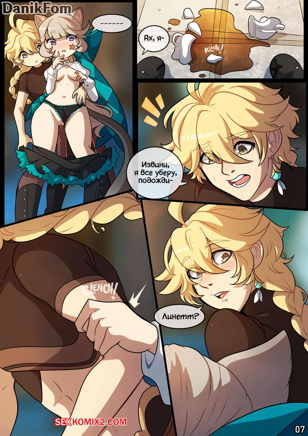 Порно комикс Genshin Impact. Переход в Режим Объятий. Entering Cuddle Mode. Kinkymation Парень с девушкой были очень возбуждены и решили повеселиться. Красотка разделась и отсосала большой хуй своего дружка, после чего дала ему выебать свою пизденку и кончить в нее.
