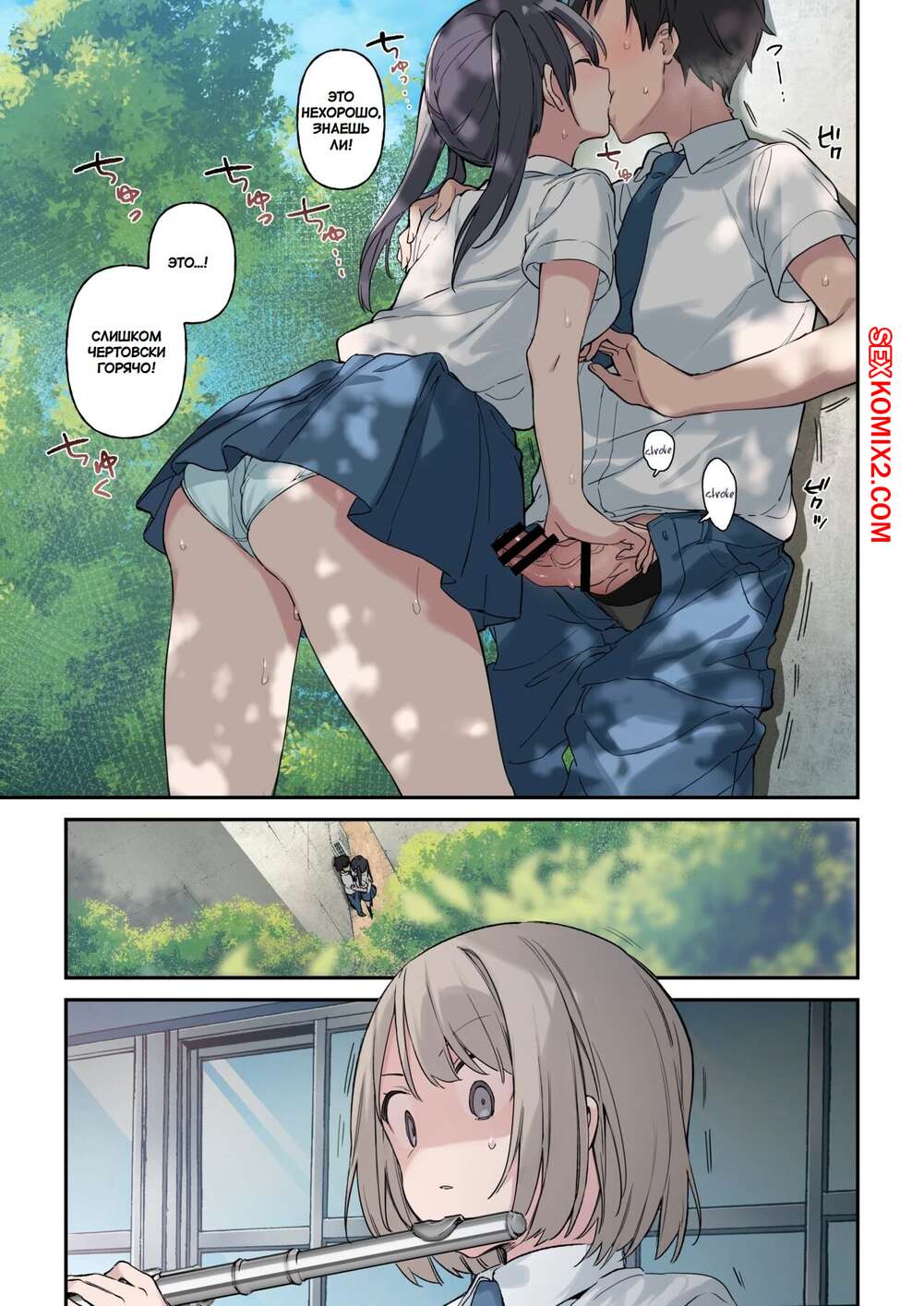 Порно комикс Больше, чем ты думаешь. More Than You Think. Fujiyama Парень провожал подругу после школы и красотка решила с ним повеселиться. Девушка разделась и отсосала большой хуй своего дружка, после чего дала ему выебать свою пизденку.