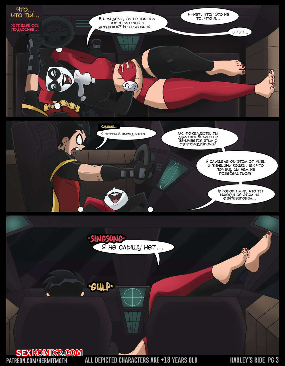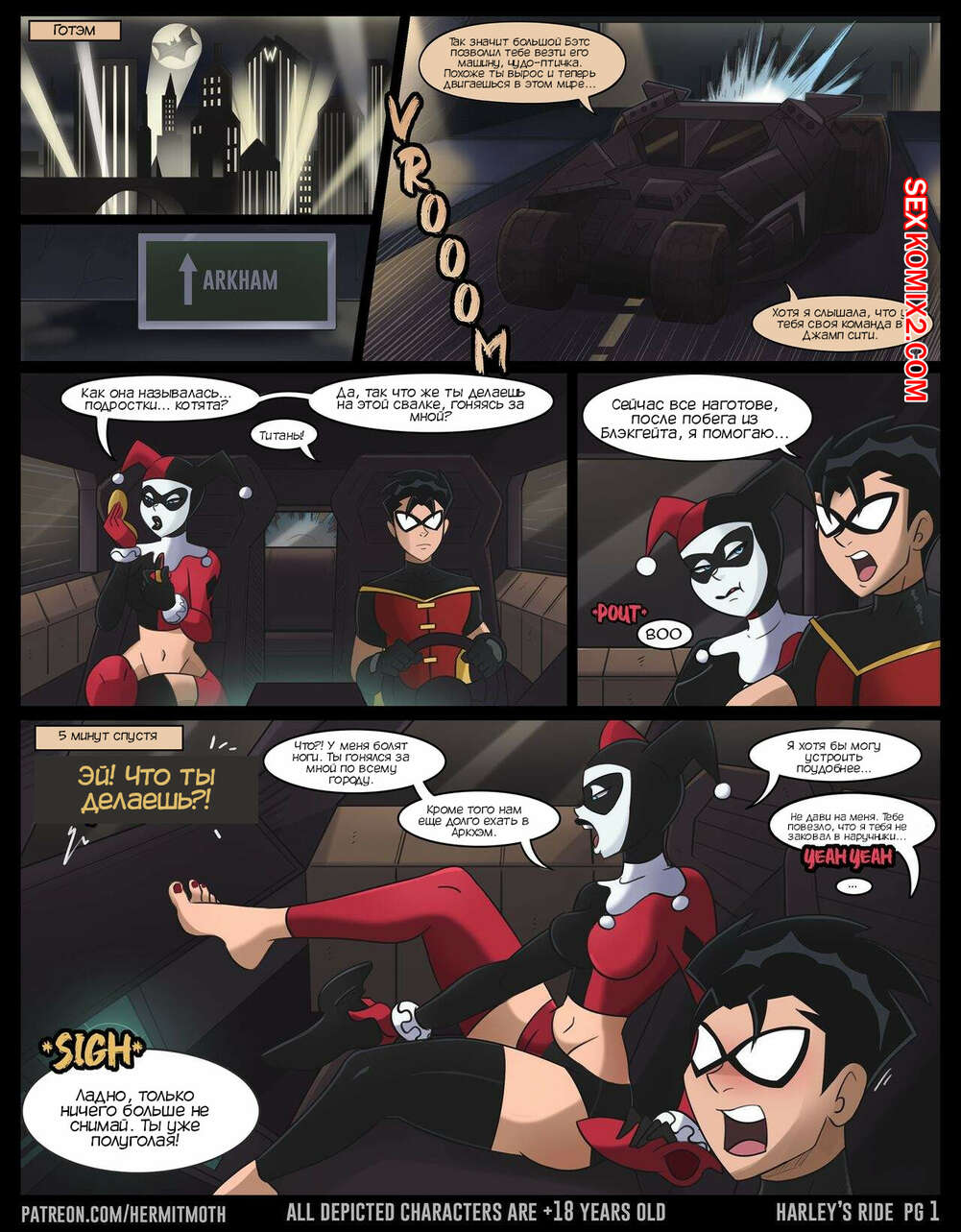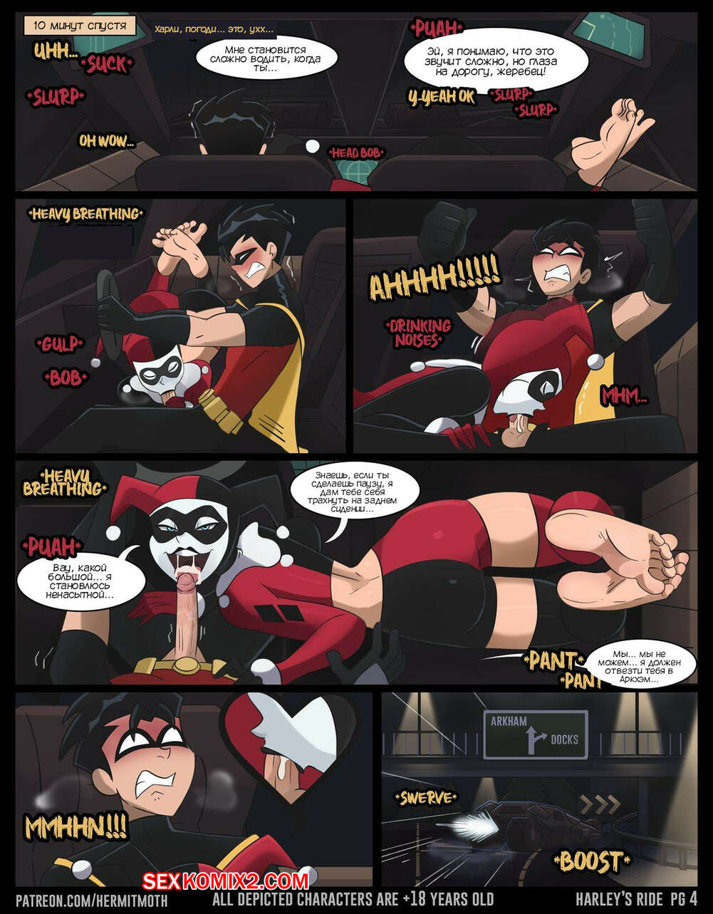 ΠΠΎΡΠ½ΠΎ ΠΊΠΎΠΌΠΈΠΊΡ DC. ΠΠΎΠ΅Π·Π΄ΠΊΠ° Π₯Π°ΡΠ»ΠΈ. Harleys Ride. Hermit Moth Π ΠΎΠ±ΠΈΠ½ ΠΏΠΎΠΉΠΌΠ°Π» Π₯Π°ΡΠ»ΠΈ ΠΈ Π΄ΠΎΡΡΠ°Π²Π»ΡΠ» Π΅Π΅ Π² ΠΡΠΊΡ ΡΠΌ, Π½ΠΎ Π·Π»ΠΎΠ΄Π΅ΠΉΠΊΠ° ΡΡΠ°Π»Π° ΡΠΎΠ±Π»Π°Π·Π½ΡΡΡ Π³Π΅ΡΠΎΡ, ΠΆΠ΅Π»Π°Ρ Π΅Π³ΠΎ ΠΎΡΠ²Π»Π΅ΡΡ. ΠΠ΅Π²ΡΡΠΊΠ° ΠΎΡΡΠΎΡΠ°Π»Π° Ρ ΡΠΉ ΠΏΠ°ΡΠ½Ρ, ΠΏΠΎΡΠ»Π΅ ΡΠ΅Π³ΠΎ Π΄Π°Π»Π° Π΅ΠΌΡ ΡΠ΅Π±Ρ Π²ΡΠ΅Π±Π°ΡΡ, Π° Π·Π°ΡΠ΅ΠΌ ΡΠ±Π΅ΠΆΠ°Π»Π°, ΠΏΠΎΠΊΠ° Π ΠΎΠ±ΠΈΠ½ Π±ΡΠ» Π±Π΅Π· ΡΠΎΠ·Π½Π°Π½ΠΈΡ.